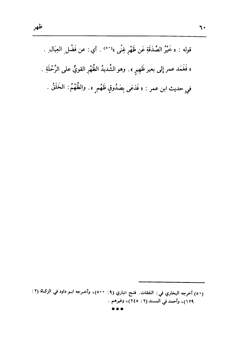 فغمد عمر إِلَى بعير ظهير وَهُوَ الشَّديد الظّهْر الْقوي عَلَى الرحلة