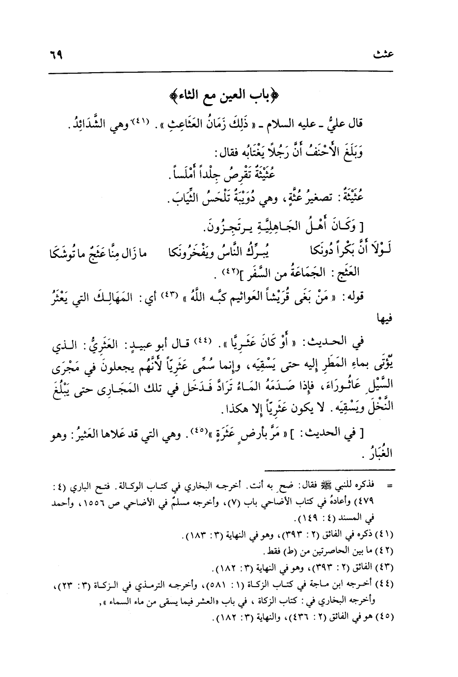 قَالَ عَلّي عَلَيْهِ السَّلَام ذَلِك زمَان العثاعث وَهِي الشدائد