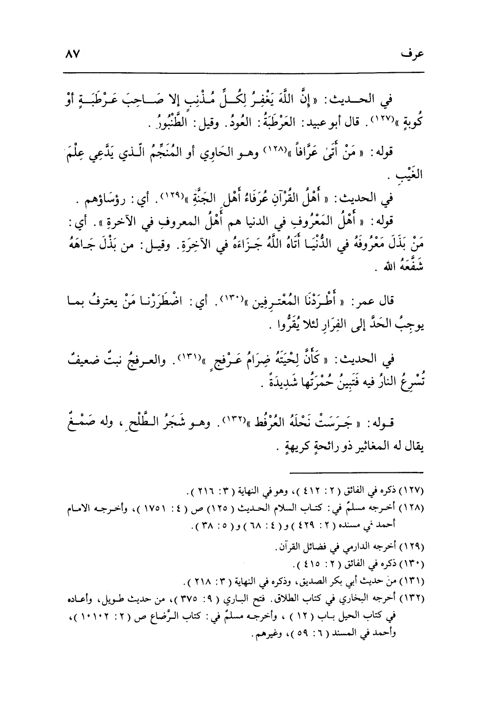 فِي الحَدِيث أهل الْقُرْآن عرفاء أهل الْجنَّة أَي رؤساؤهم