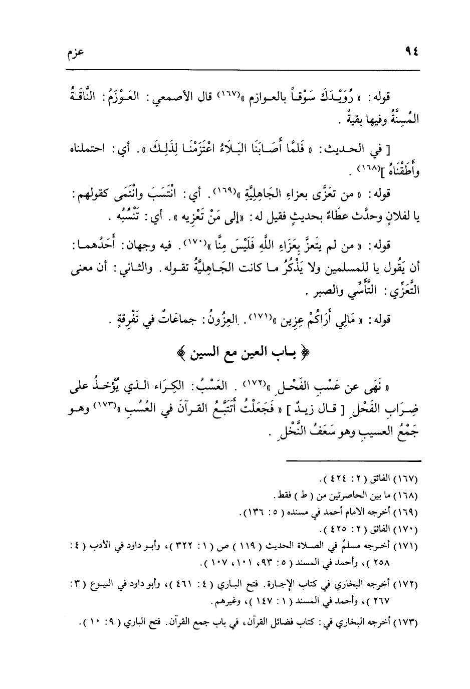 قَوْله من تعزى بعزاء الْجَاهِلِيَّة أَي انتسب وانتمى كَقَوْلِهِم يَا لفُلَان وَحدث عَطاء بِحَدِيث فَقيل لَهُ إِلَى من تعزيه أَي تنسبه