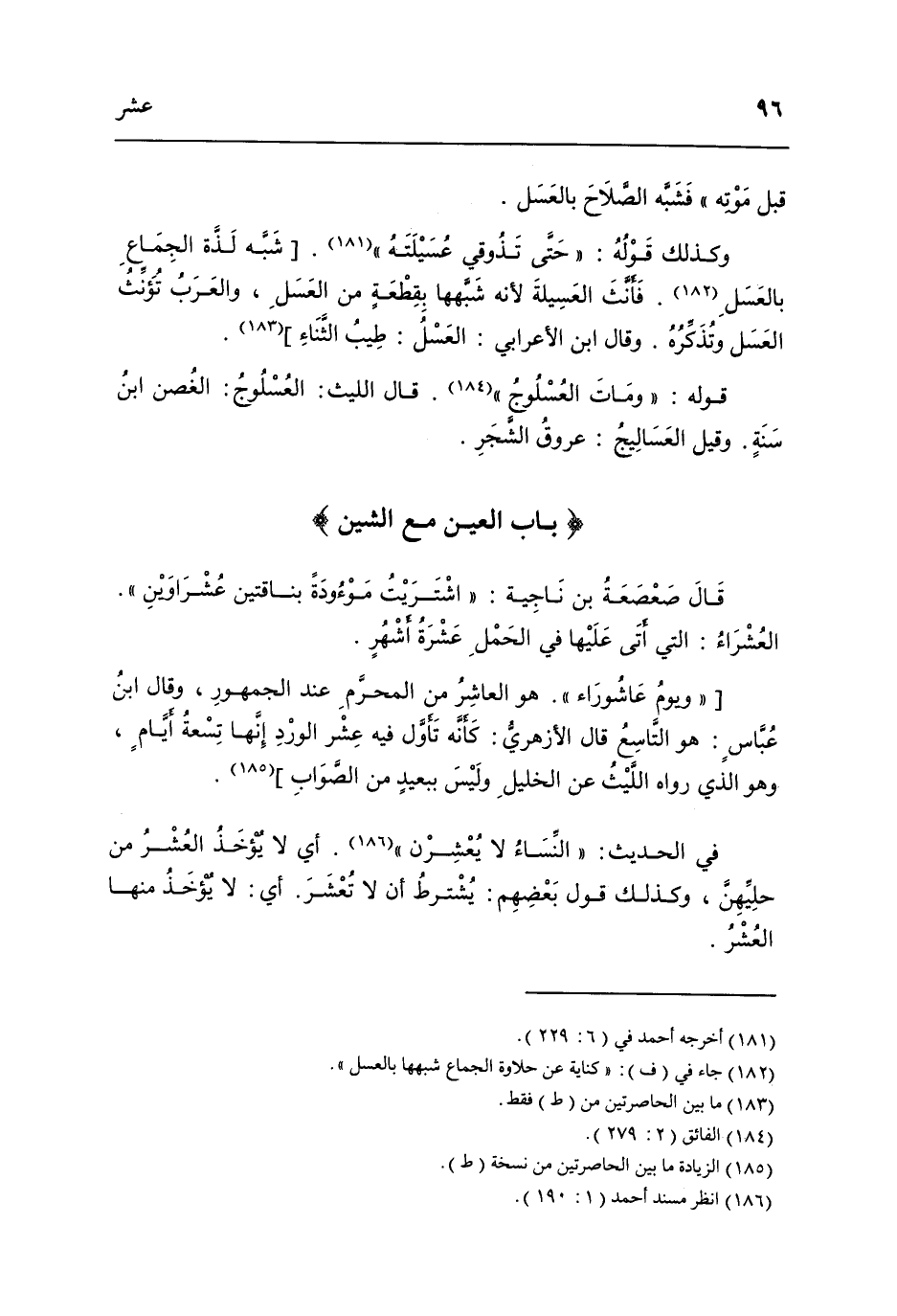 فِي الحَدِيث النِّسَاء لَا يعشرن أَي لَا يُؤْخَذ الْعشْر من حليهن وَكَذَلِكَ قَول بَعضهم يشْتَرط أَن لَا تعشر أَي لَا يُؤْخَذ مِنْهَا الْعشْر