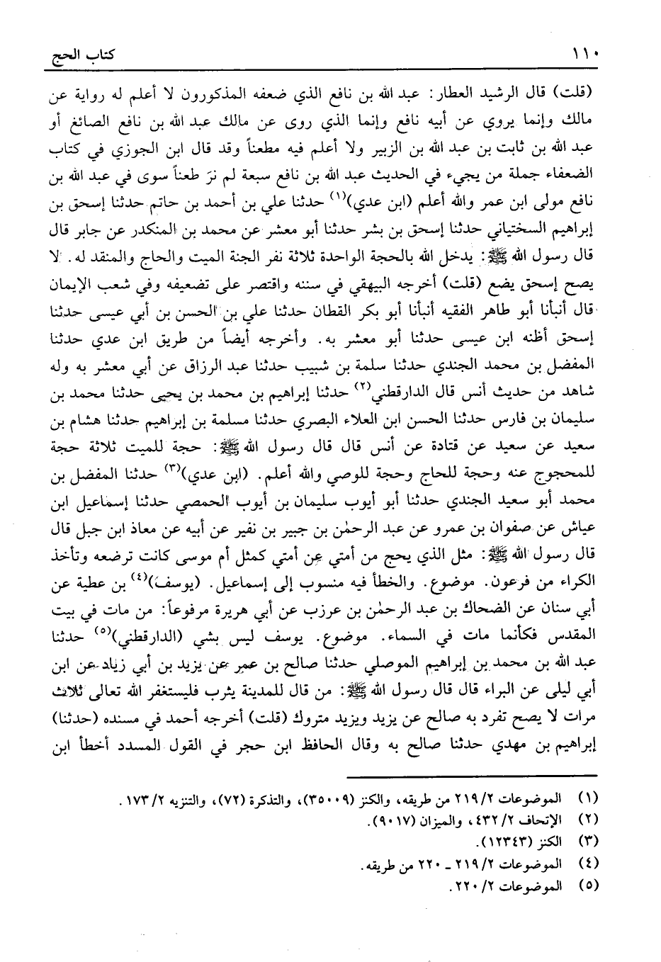 (قُلْتُ) قَالَ الرشيد العَطَّار: عَبْد اللَّه بْن نَافِع الَّذِي ضعفه المذكورون لَا أَعْلَم لَهُ رِوَايَة عَنْ مَالك وَإِنَّمَا يروي عَنْ أَبِيه نَافِع وإِنَّمَا الَّذِي رَوَى عَنْ مَالك عَبْد اللَّه بْن نَافِع الصَّائِغ أَوْ عَبْد الله بْن ثَابت بْن عَبْد اللَّه بْن الزُّبَير وَلَا أَعْلَم فِيهِ مطعنًا وَقَدْ قَالَ ابْن الْجَوْزِيّ فِي كتاب الضُّعَفَاء جملَة منْ يَجِيء فِي الْحَدِيث عَبْد اللَّه بْن نَافِع سَبْعَة لَمْ نر طَعنا سوى فِي عَبْد اللَّه بْن نَافِع مَوْلَى ابْن عُمَر واللَّه أَعْلَم (ابْن عدي) حَدَّثَنَا عَلِيّ بْن أَحْمَد بْن حَاتِم حَدَّثَنَا إِسْحَاق بْن إِبْرَاهِيم السّخْتِيَانِيّ حَدَّثَنَا إِسْحَاق بْن بشر حَدَّثَنَا أَبُو مَعْشَر عَنْ مُحَمَّد بْن الْمُنْكَدر عَن جَابِر قَالَ قَالَ رَسُول الله: يُدْخِلُ اللَّهُ بِالْحِجَّةِ الْوَاحِدَةِ ثَلاثَةَ نفر الْجنَّة الْمَيِّت والحاج والمنقد لَهُ.