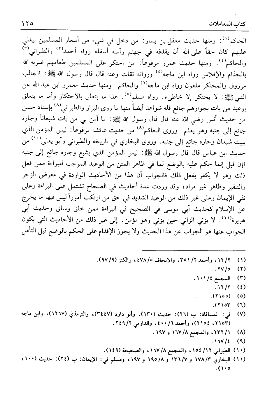 هَذَا مَا يتَعَلَّق بالاحتكار وَأما مَا يتَعَلَّق بوعيد منْ بَات بجوارهم جَائِع فَلَه شَوَاهِد أَيْضا مِنْهَا مَا رَوَى الْبَزَّار والطَّبَرَانِيّ بِإِسْنَاد حسن منْ حَدِيث أَنَس رَضِيَ اللَّه عَنْهُ قَالَ قَالَ رَسُول الله: مَا آمن بِي منْ بَات شبعانا وجاره جَائِع إِلَى جنبه وَهُوَ يعلم.