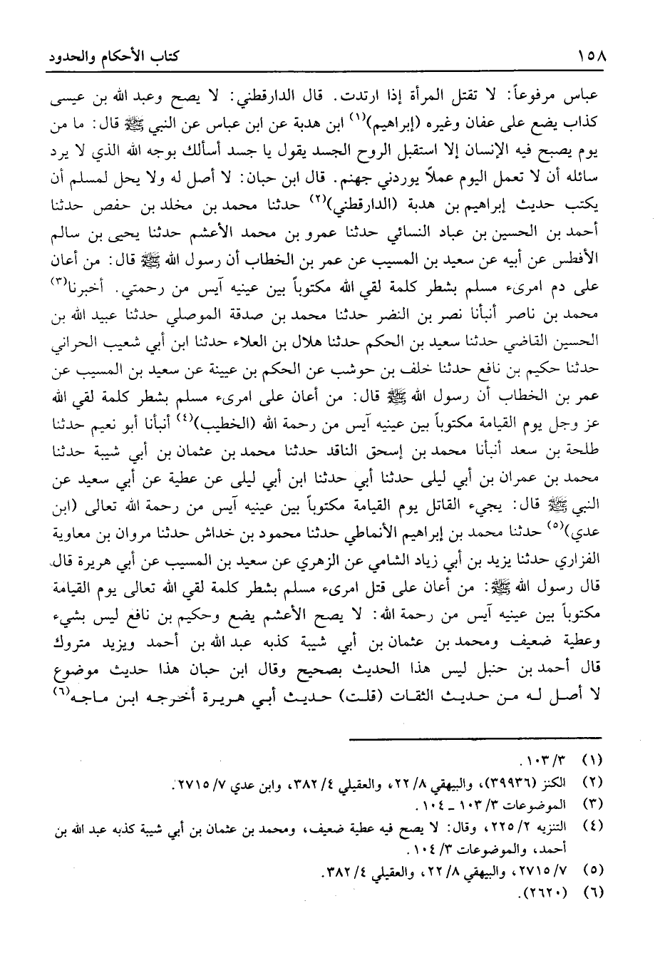 قَالَ ابْن حَبَّان: لَا أَصْلَ لَهُ وَلَا يحل لمُسلم أَن يكْتب حَدِيث إِبْرَاهِيم بْن هدبة (الدارَقُطْنيّ) حَدَّثَنَا مُحَمَّد بْن مَخْلَد بْن حَفْص حَدَّثَنَا أَحْمَد بْن الْحُسَيْن بْن عباد النَّسَائِيّ حَدثنَا يحيى بن عَمْرو بْن مُحَمَّد الْأَعْشَم حَدَّثَنَا سَالم بْن سَالم الْأَفْطَس عَنْ أَبِيهِ عَن سَعِيد بْن الْمسيب عَن عُمَرَ بْنِ الْخَطَّابِ أَنّ رَسُولَ الله قَالَ: مَنْ أَعَانَ عَلَى دَمِ امْرِئٍ مُسْلِمٍ بِشَطْرِ كَلِمَةٍ لَقِيَ الله مَكْتُوبًا بَين عينه آيِسٌ مِنْ رَحْمَتِي.