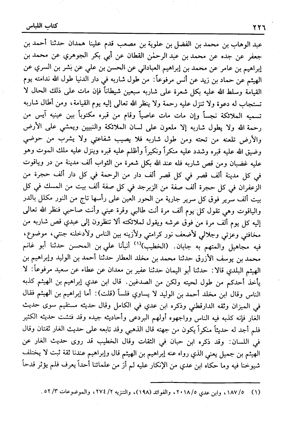قَالَ ابْن عَدِيّ إِبْرَاهِيم بْن الْهَيْثَم كذبه النّاس وقَالَ ابْن مَخْلَد أَحْمَد بْن الْوَلِيد لَا يُسَاوِي فلسًا (قُلْتُ) أما إِبْرَاهِيم بْن الْهَيْثَم فَقَالَ فِي الْمِيزَان وثّقه الدارَقُطْنيّ وَذكره ابْن عَدِيّ فِي الْكَامِل وقَالَ حَدِيثه مُسْتَقِيم سوى حَدِيث الْغَار فَإنَّهُ كذبه فِيهِ النّاس وواجهوه أَوَّلهمْ البردعي وَأَحَادِيثه جَيِّدَة وَقَدْ فتشت حَدِيثه الْكثير فَلم أجد لَهُ حَدِيثا مُنْكرا يكون من جِهَته قَالَ الذَّهَبِيّ وَقَدْ تَابعه عَلَى حَدِيث الْغَار ثقتان وقَالَ فِي اللِّسَان: وَقد ذكره ابْن حبَان فِي الثِّقَات وقَالَ الْخَطِيب قَدْ رَوَى حَدِيث الْغَار عَنِ الْهَيْثَم بْن جميل يَعْنِي الَّذِي رَوَاهُ عَنْهُ إِبْرَاهِيم بْن الْهَيْثَم قَالَ وإِبْرَاهِيم عندنَا ثِقَة ثَبت لَا يخْتَلف شُيُوخنَا فِيهِ وَمَا حَكَاهُ ابْن عَدِيّ مِنَ الْإِنْكَار عَلَيْه لَمْ أر من عُلَمَائِنَا أحد يعرف فَلم يُؤثر قدحا
