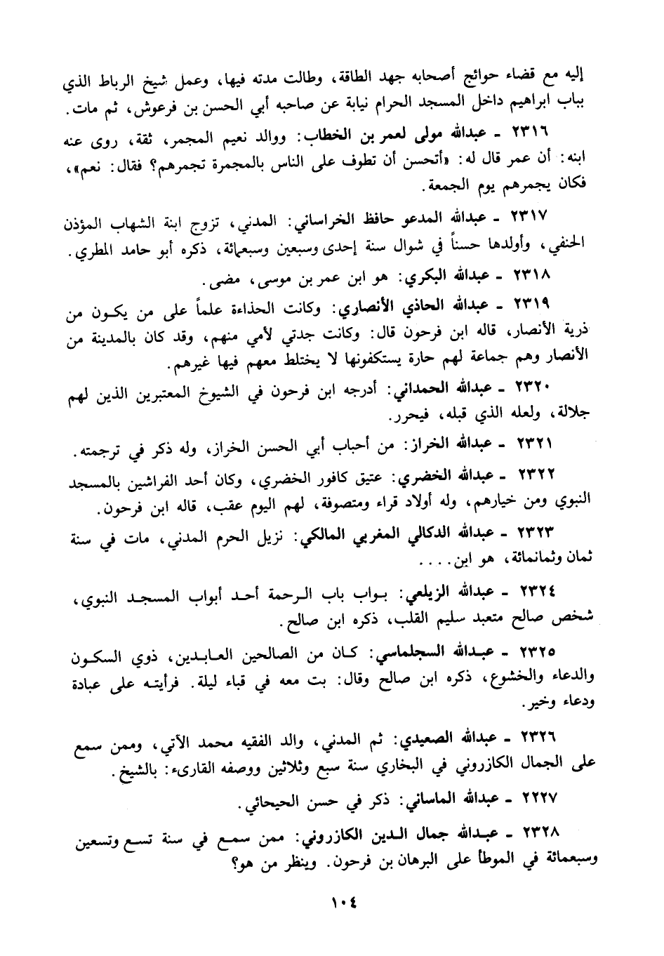 2320 - عبد الله الحمداني: أدرجه ابن فرحون في الشيوخ المعتبرين الذين لهم جلالة ولعله الذي قبله فيحرر.