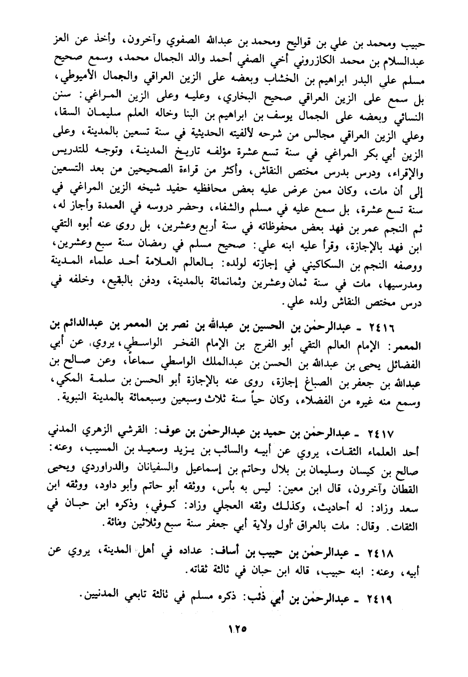 2419 - عبد الرحمن بن أبي ذئب: ذكره مسلم في ثالثة تابعي المدنيين.