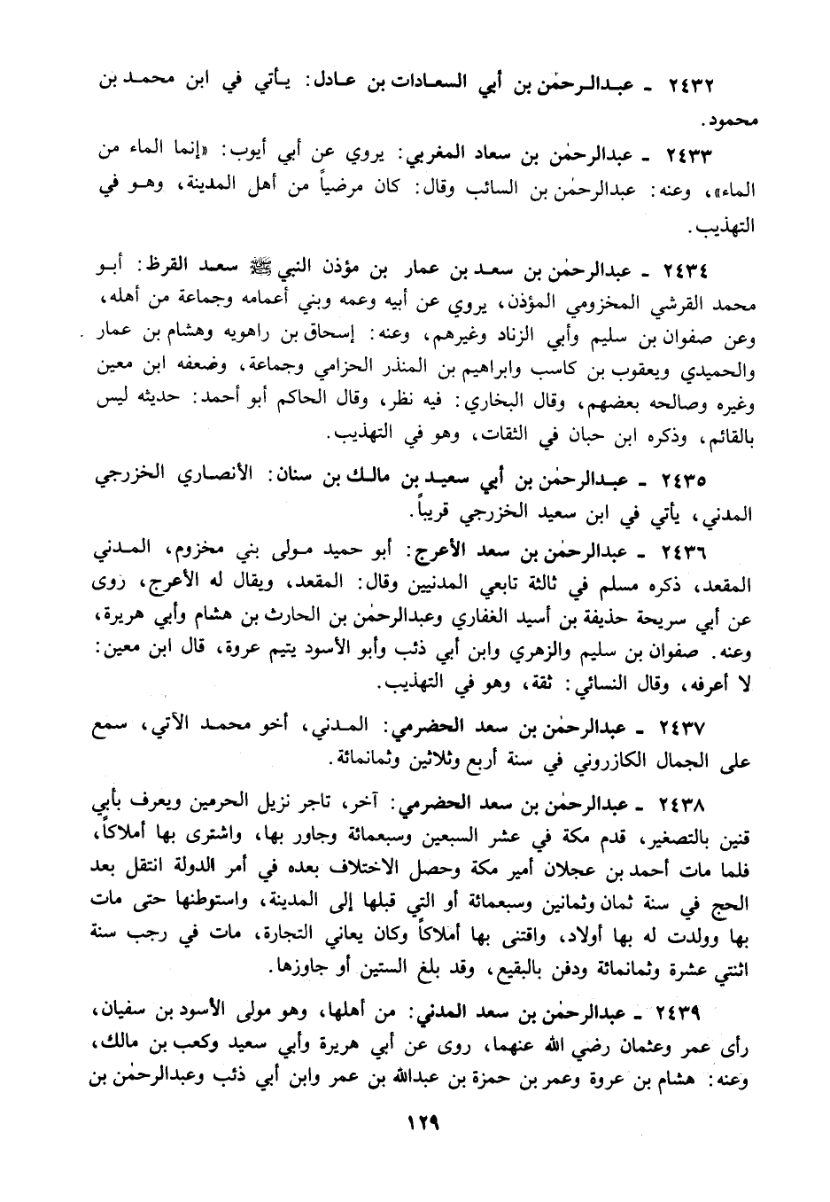 2435 - عبد الرحمن بن أبي سعيد بن مالك بن سنان: الأنصاري الخزرجي المدني يأتي في ابن سعيد الخزرجي قريبا.