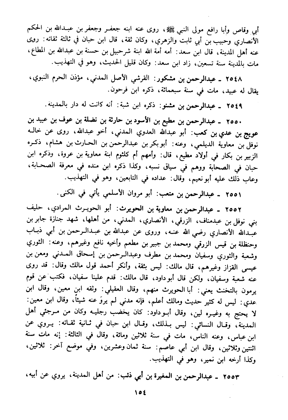 2549 - عبد الرحمن بن مشنو: ذكره ابن شبة أنه كانت له دار بالمدينة.