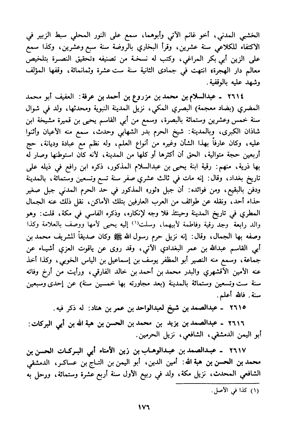 2616 - عبد الصمد بن يزيد بن محمد بن الحسن بن هبة الله بن أبي البركات: أبو اليمن الدمشقي الشافعي نزيل الحرمين.
