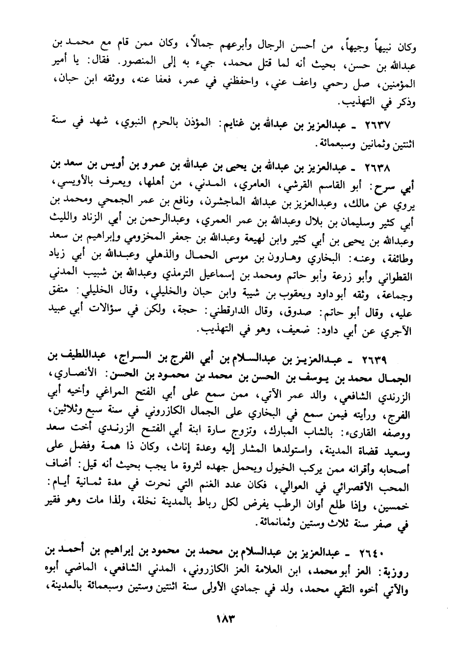 2637 - عبد العزيز بن عبد الله بن غنايم: المؤذن بالحرم النبوي شهد في سنة اثنتين وثمانين وسبعمائة.