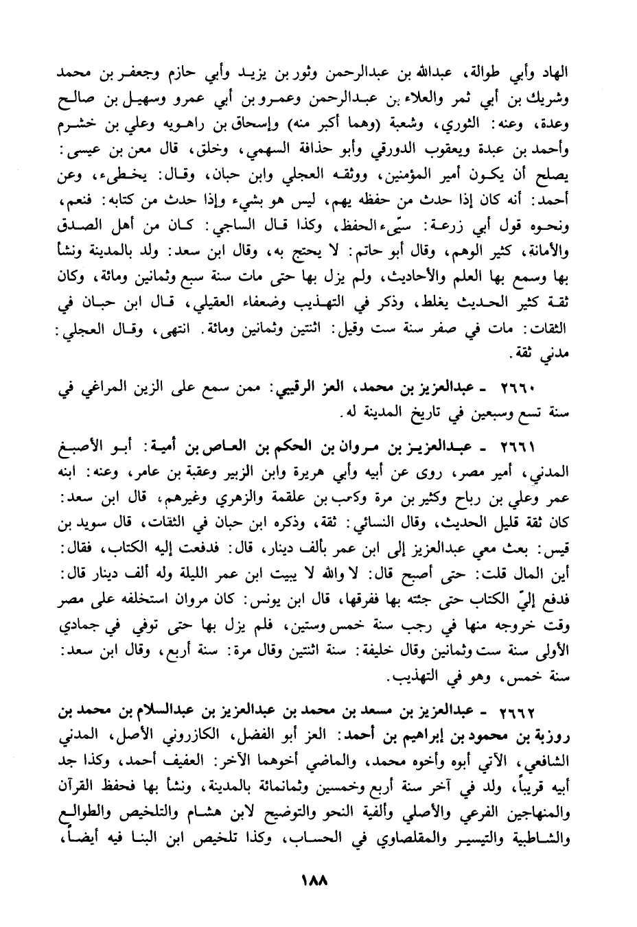 2660 - عبد العزيز بن محمد العز الرقيبي: ممن سمع على الزين المراغي في سنة تسع وسبعين في تاريخ المدينة له.