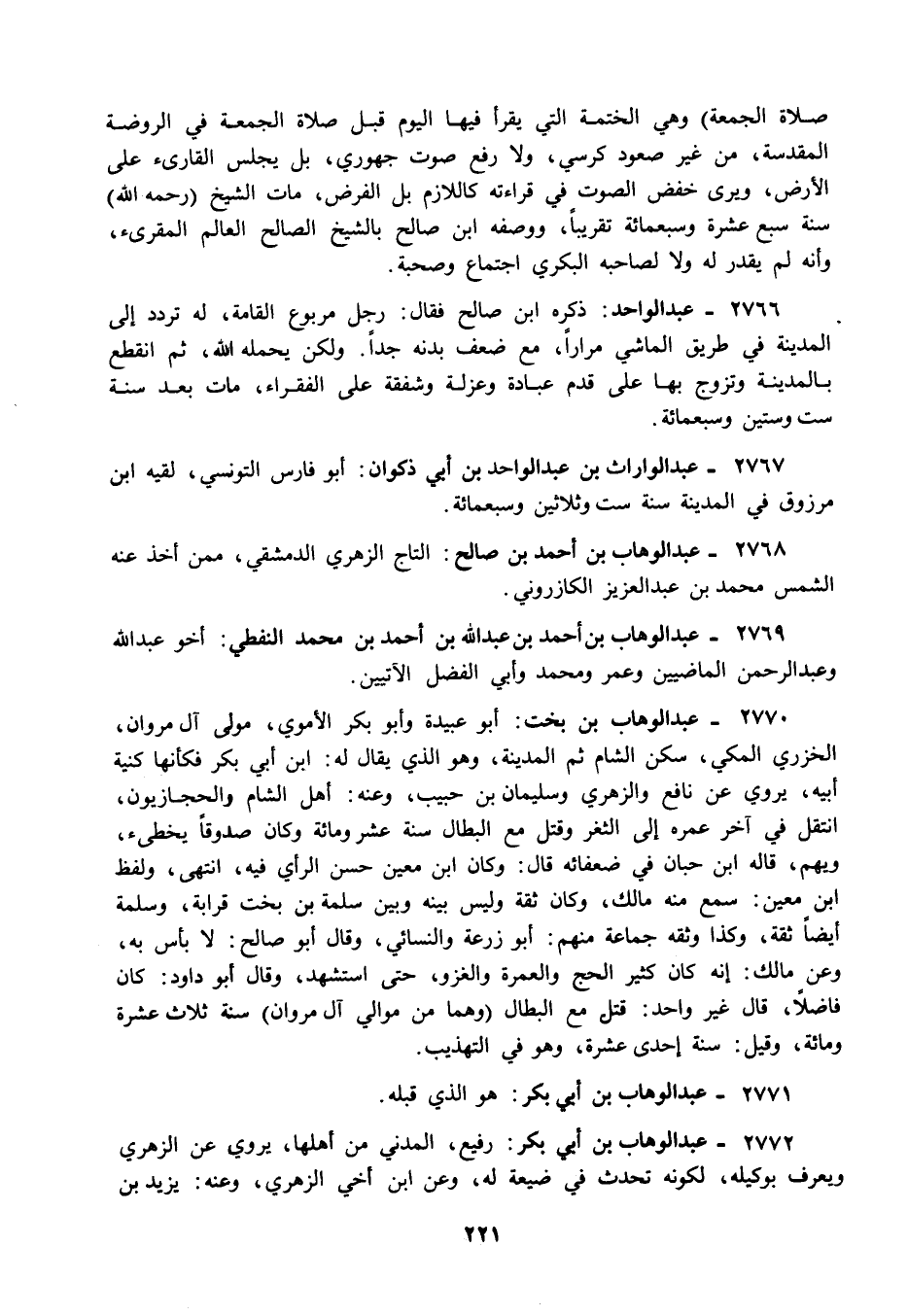 2772 - عبد الوهاب بن أبي بكر: رفيع المدني من أهلها يروي عن الزهري ويعرف بوكيله لكونه تحدث في ضيعة له وعن ابن أخي الزهري وعنه: يزيد بن