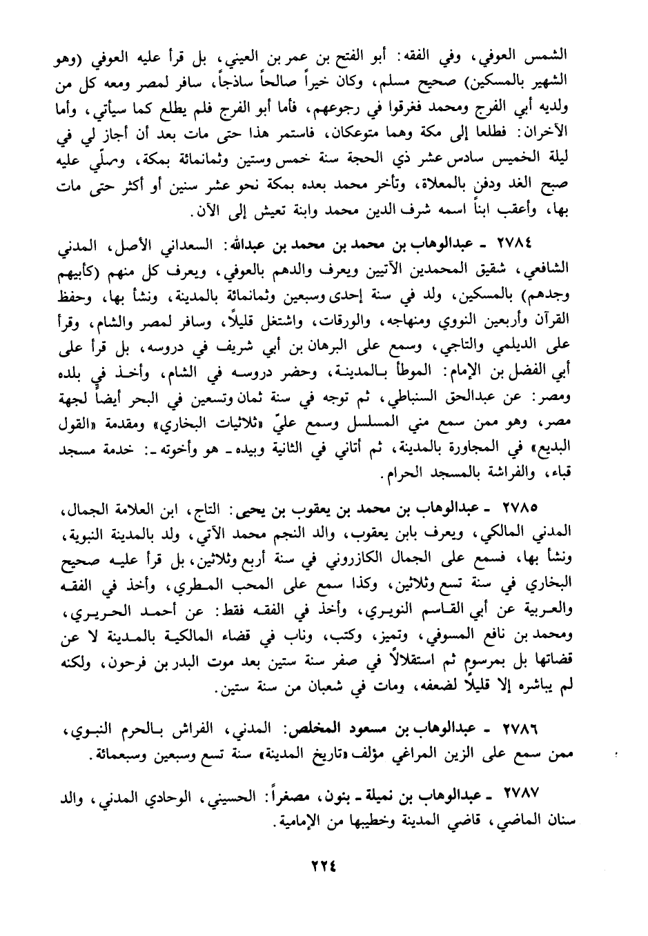 2786 - عبد الوهاب بن مسعود المخلص: المدني الفراش بالحرم النبوي ممن سمع على الزين المراغي مؤلف "تاريخ المدينة" سنة تسع وسبعين وسبعمائة.