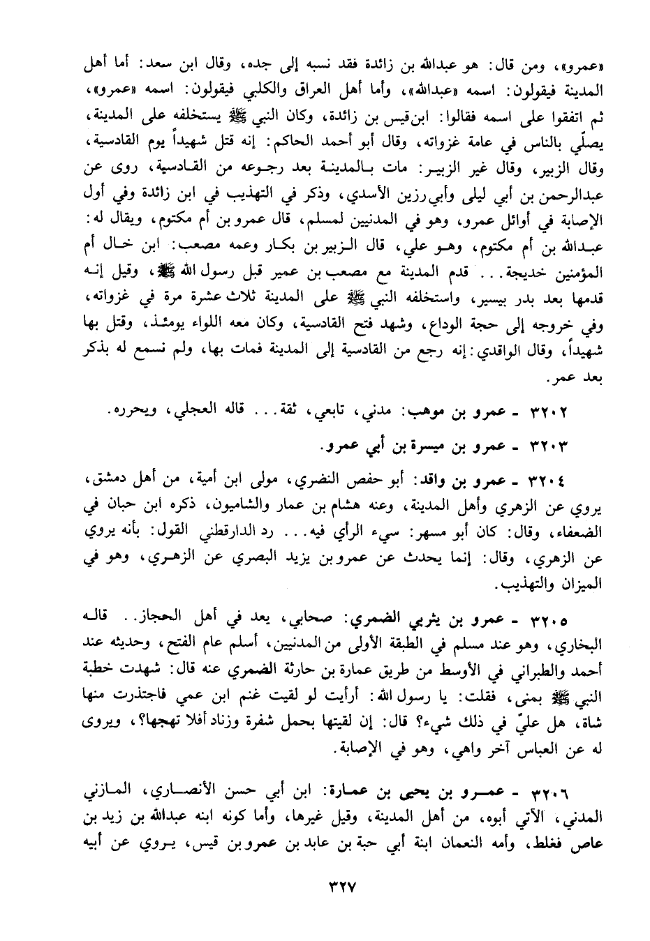 3204 - عمرو بن واقد: أبو حفص النضري مولى ابن أمية من أهل دمشق يروي عن الزهري وأهل المدينة وعنه هشام بن عمار والشاميون ذكره ابن حبان في الضعفاء وقال: كان أبو مسهر: سيء الرأي فيه رد الدارقطني القول: بأنه يروي عن الزهري وقال: إنما يحدث عن عمرو بن يزيد البصري عن الزهري وهو في الميزان والتهذيب.