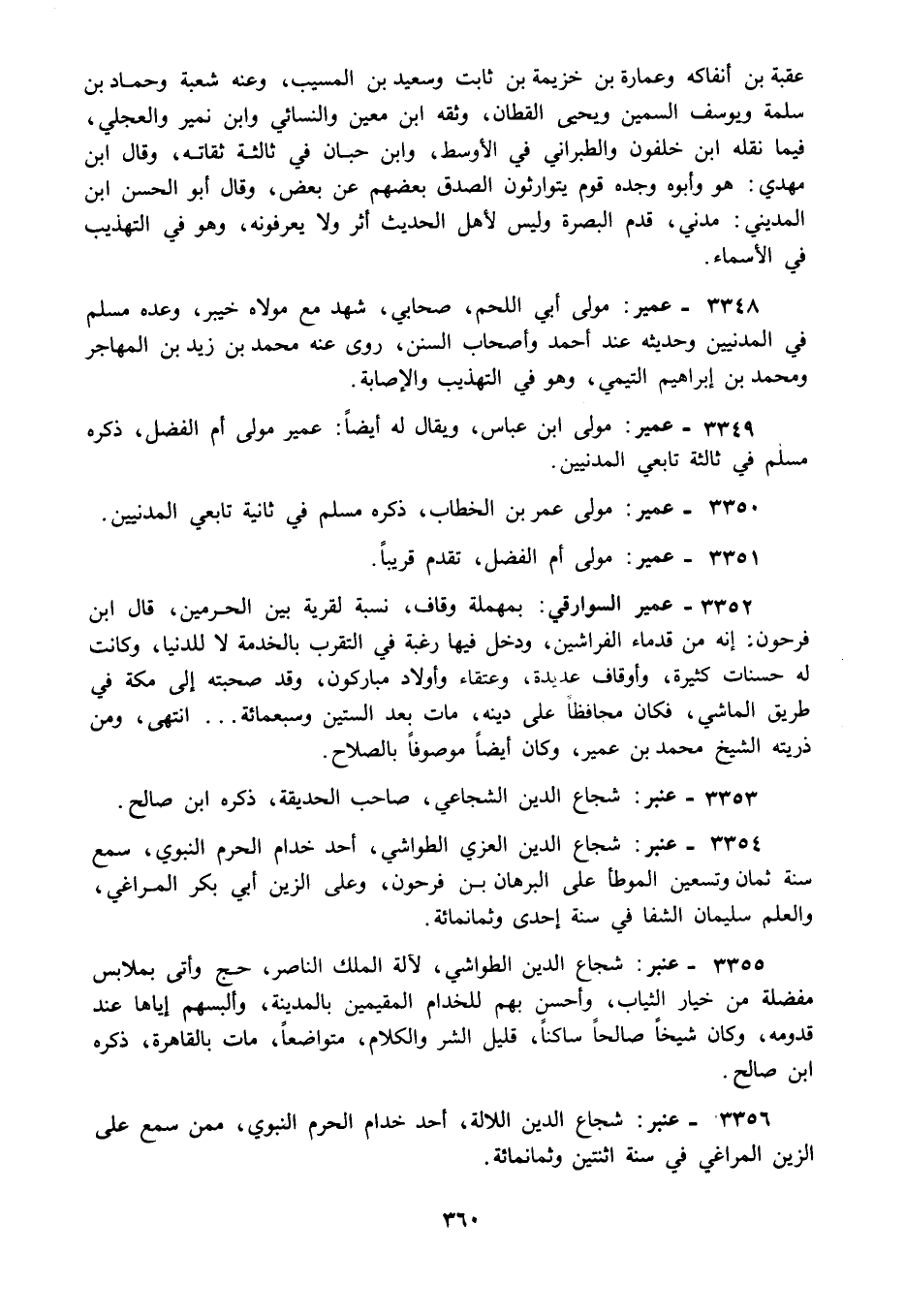 3349 – عمير: مولى ابن عباس ويقال له ايضا: عمير مولى أم الفضل ذكره مسلم في ثالثة تابعي المدنيين.