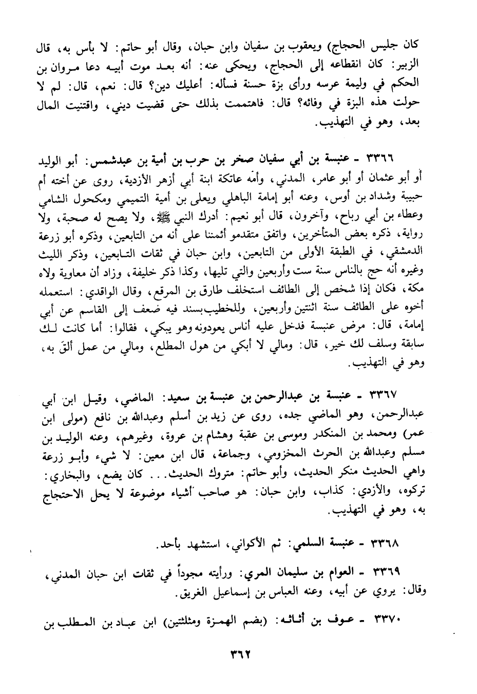 3368 - عنبسة السلمي: ثم الأكواني استشهد بأحد.