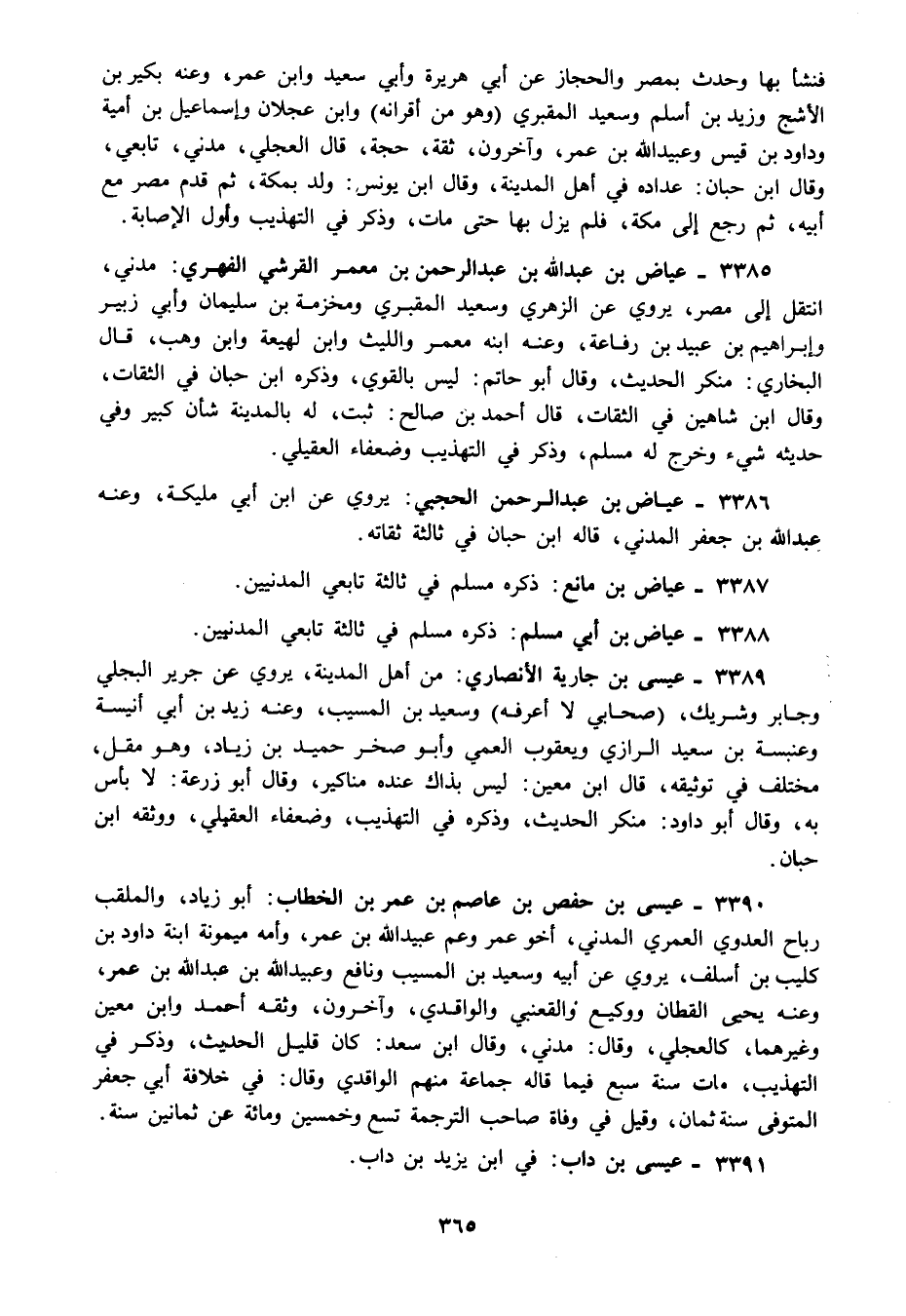 3386 - عياض بن عبد الرحمن الحجبي: يروي عن ابن أبي مليكة وعنه عبد الله بن جعفر المدني قاله ابن حبان في ثالثة ثقاته.