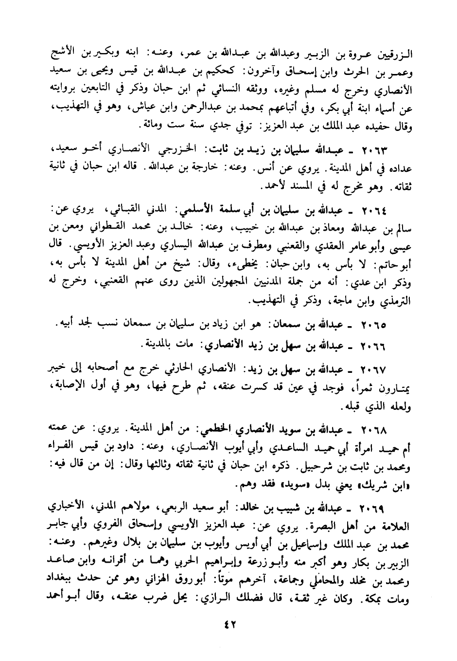 2063 - عبد الله سليمان بن زيد بن ثابت: الخزرجي الأنصاري أخو سعيد عداده في أهل المدينة يروي عن أنس وعنه: خارجة بن عبد الله قاله ابن حبان في ثانية ثقاته وهو مخرج له في المسند لأحمد.