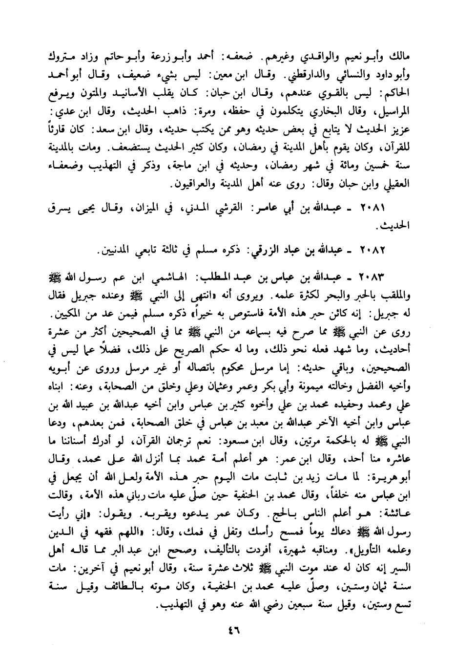 2082 - عبد الله بن عباد الزرقي: ذكره مسلم في ثالثة تابعي المدنيين.