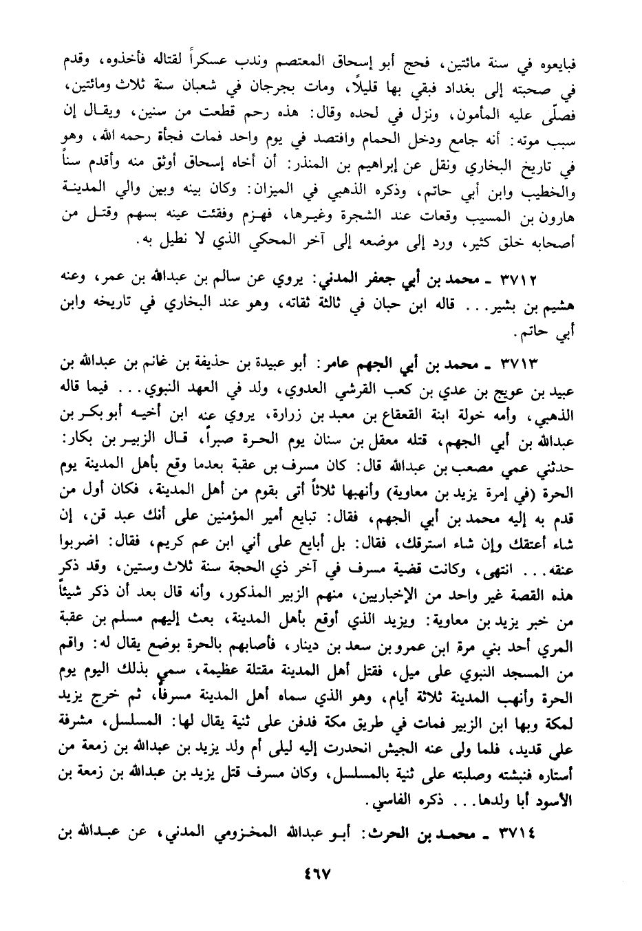 3712 - محمد بن ابي جعفر المدني: يروي عن سالم بن عبد الله بن عمر وعنه هشيم بن بشيرقاله ابن حبان في ثالثة ثقاته وهو عند البخاري في تاريخه وابن أبي حاتم.