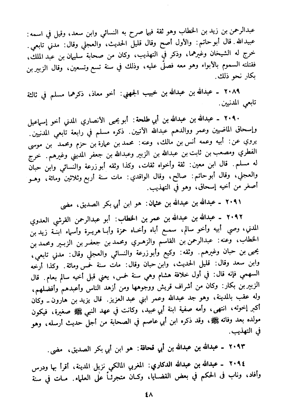 2091 - عبد الله بن عبد الله بن عثمان: هو ابن أبي بكر الصديق مضى.