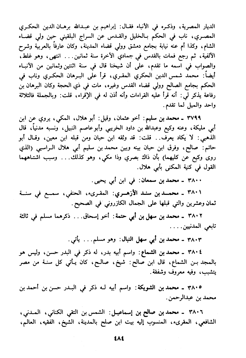 3805 - محمد بن الشويكة: واسم أبيه له ذكر في البدر حسن بن أحمد بن محمد بن عبد الرحمن.
