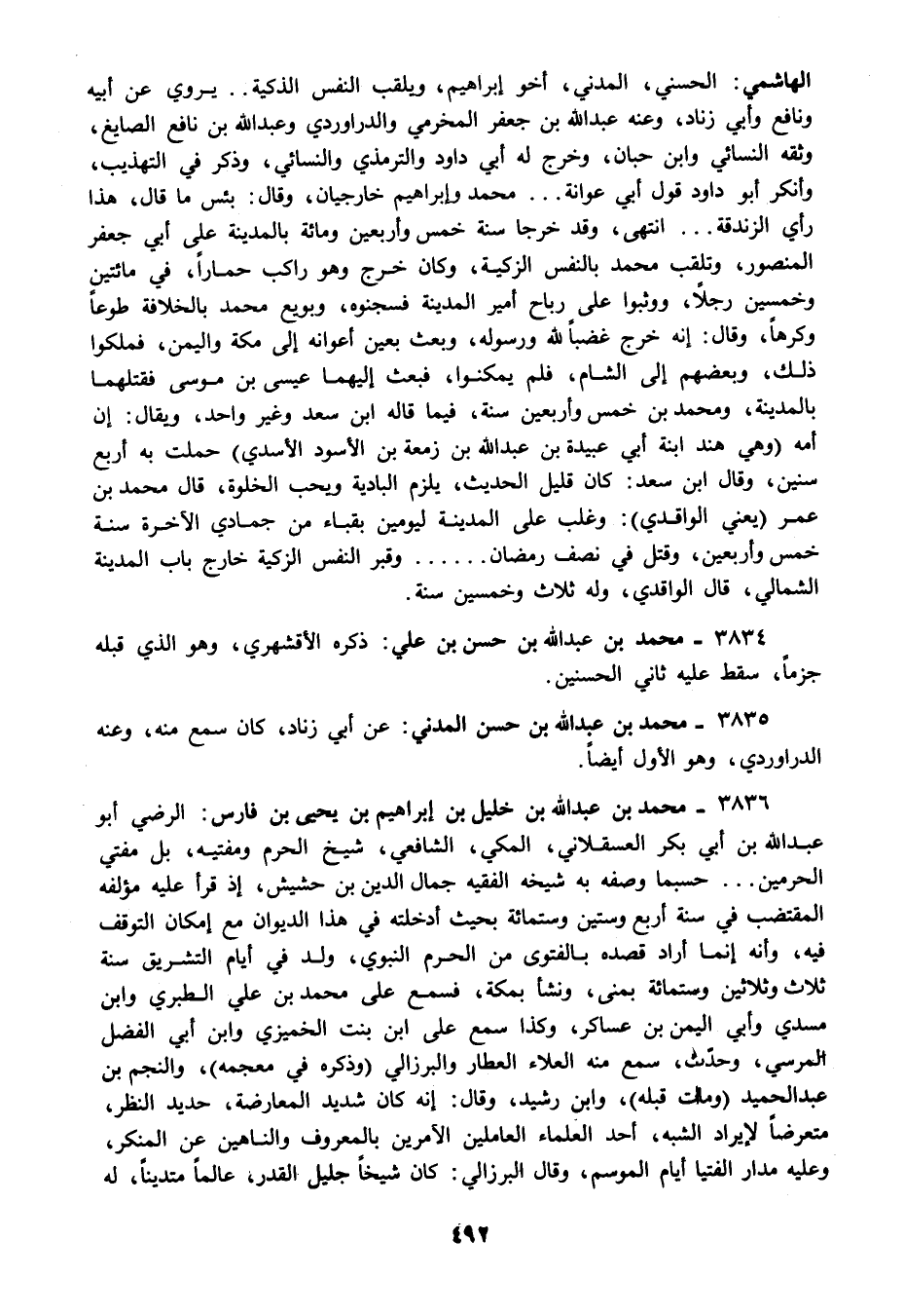 3835 - محمد بن عبد الله بن حسن المدني: عن أبي زناد كان سمع منه وعنه الدراوردي وهو الأول ايضا.