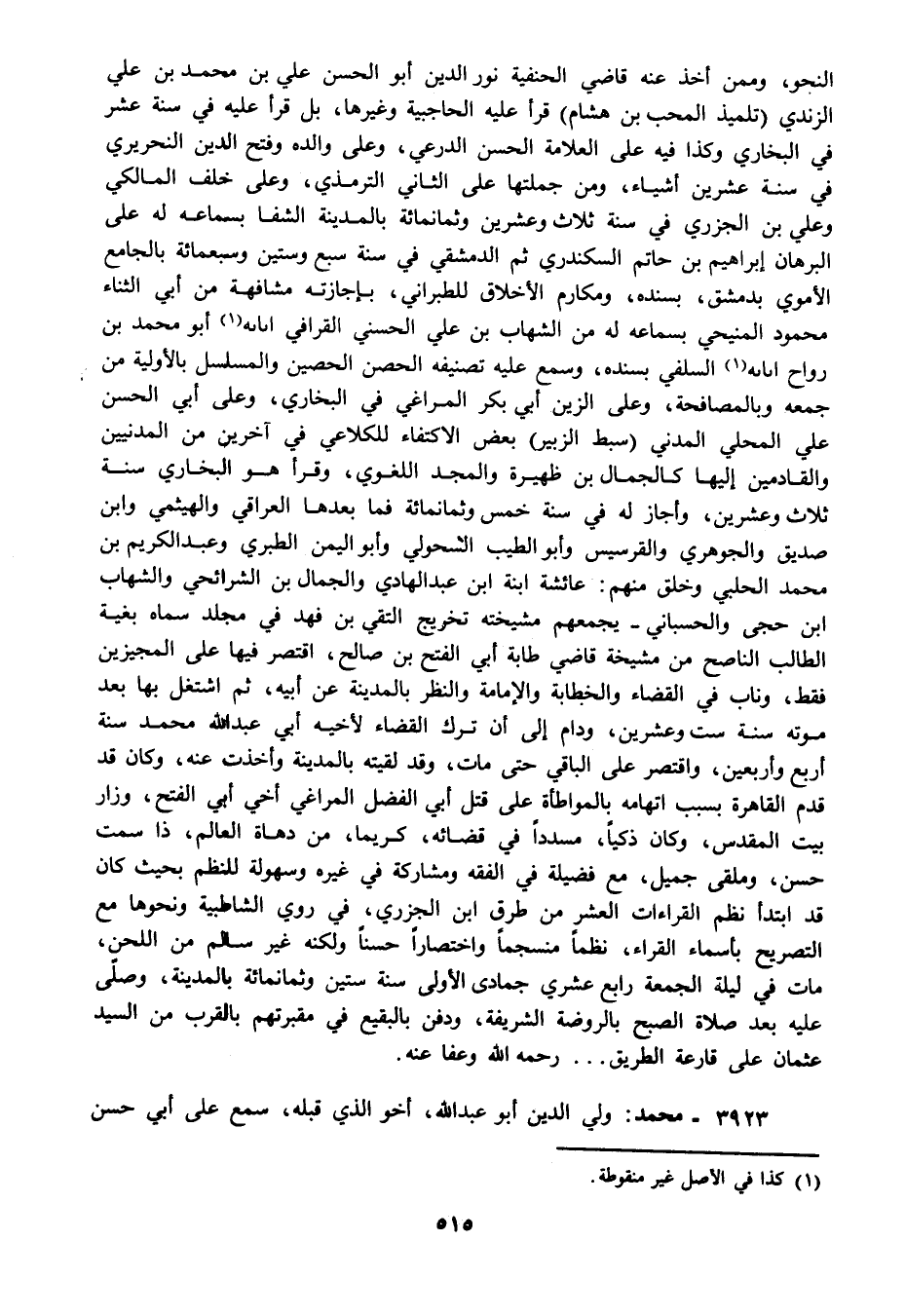3923 – محمد: ولي الدين أبو عبد الله أخو الذي قبله سمع على أبي حسن