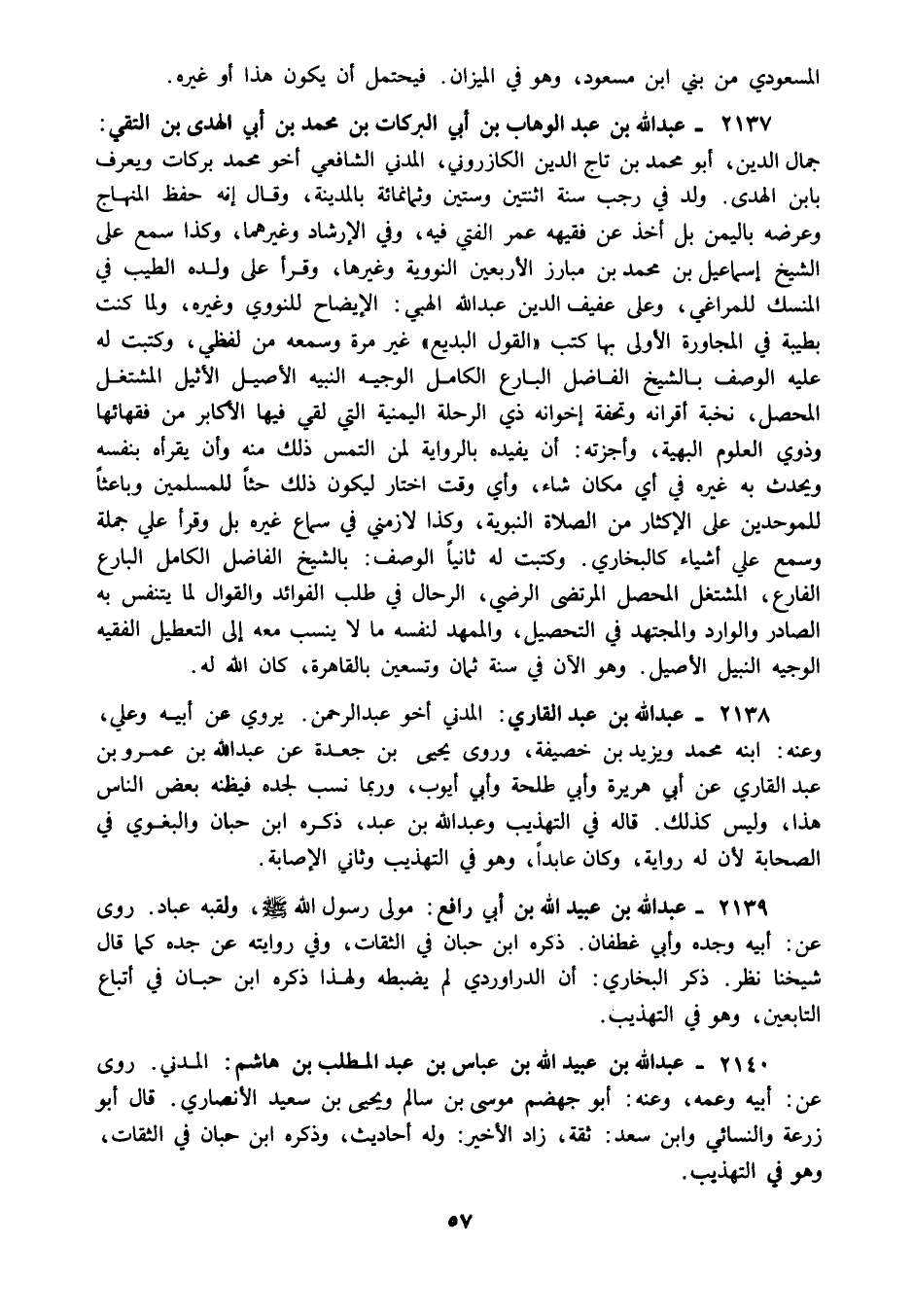 2140 - عبد الله بن عبيد الله بن عباس بن عبد المطلب بن هاشم: المدني. روى عن: أبيه وعمه وعنه: أبو جهضم موسى بن سالم ويحيى بن سعيد الأنصاري. قال أبو زرعة والنسائي وابن سعد: ثقة زاد الأخير: وله أحاديث وذكره ابن حبان في الثقات وهو في التهذيب.