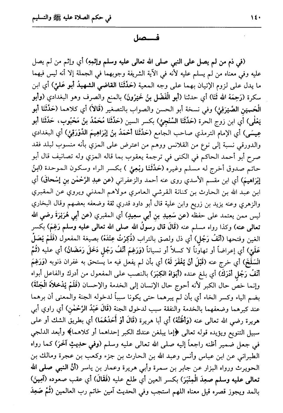فصل (فِي ذَمِّ مَنْ لَمْ يُصَلِّ عَلَى النَّبِيِّ صلى الله تعالى عليه وسلم وإثمه)