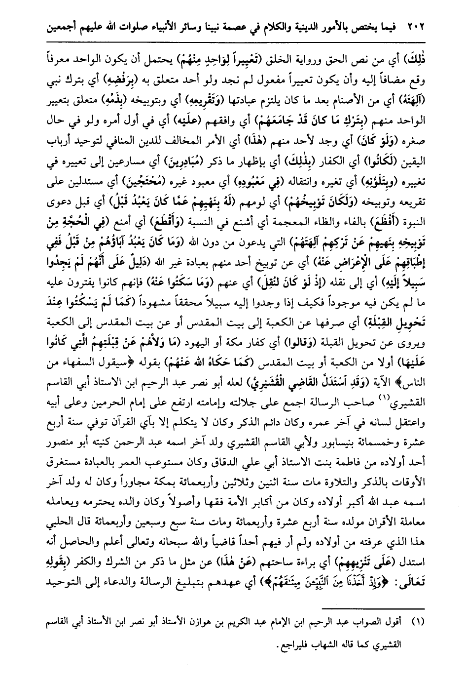 (1) أقول الصواب عبد الرحيم ابن الإمام عبد الكريم بن هوازن الأستاذ أبو نصر ابن الأستاذ أبي القاسم القشيري كما قاله الشهاب فليراجع.