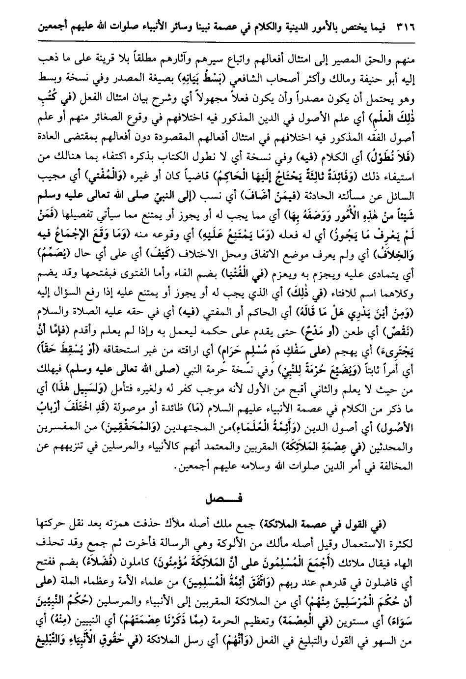 فصل (في القول في عصمة الملائكة)