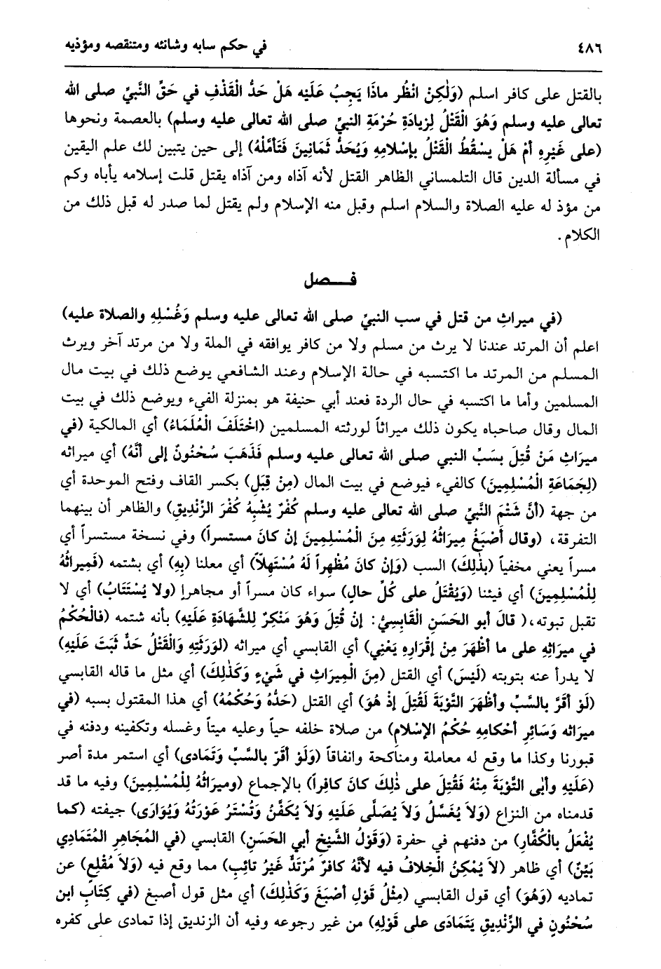 فصل (فِي مِيرَاثِ مَنْ قُتِلَ فِي سَبِّ النَّبِيِّ صلى الله تعالى عليه وسلم وغسله والصلاة عليه)