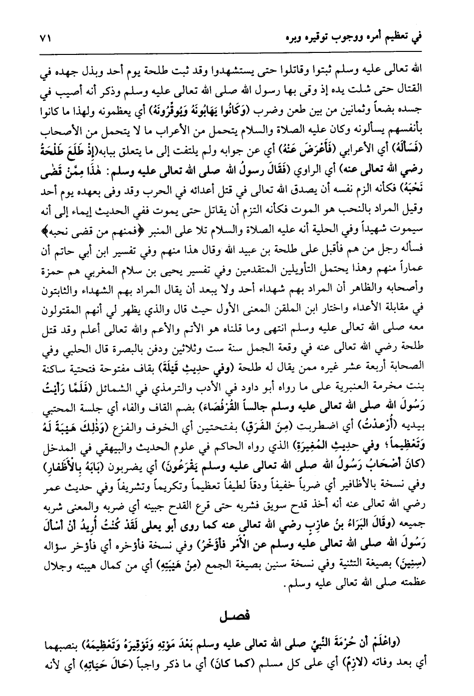 فصل [واعلم أن حرمة النبي بعد موته وتوقيره وتعظيمه لازم]