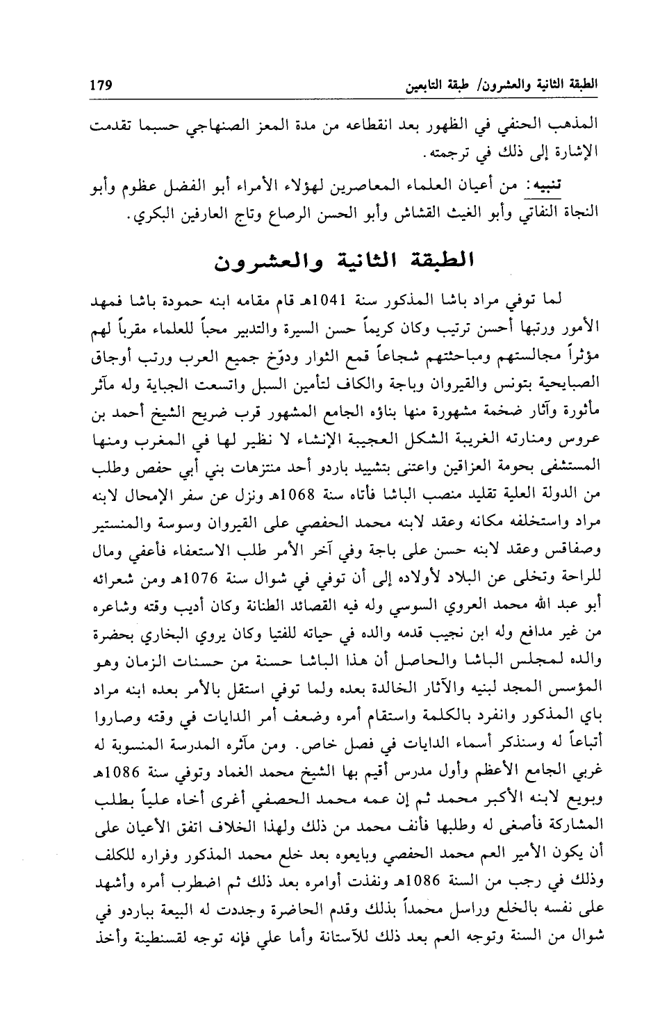تنبيه: من أعيان العلماء المعاصرين لهؤلاء الأمراء أبو الفضل عظوم وأبو النجاة النفاتي وأبو الغيث القشاش وأبو الحسن الرصاع وتاج العارفين البكري.