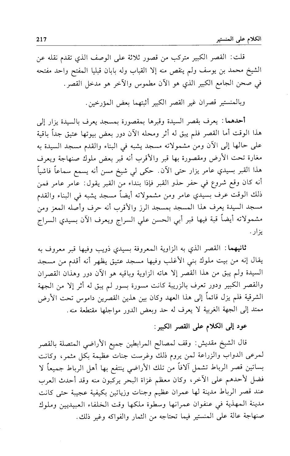 وبالمنستير قصران غير القصر الكبير أثبتهما بعض المؤرخين.