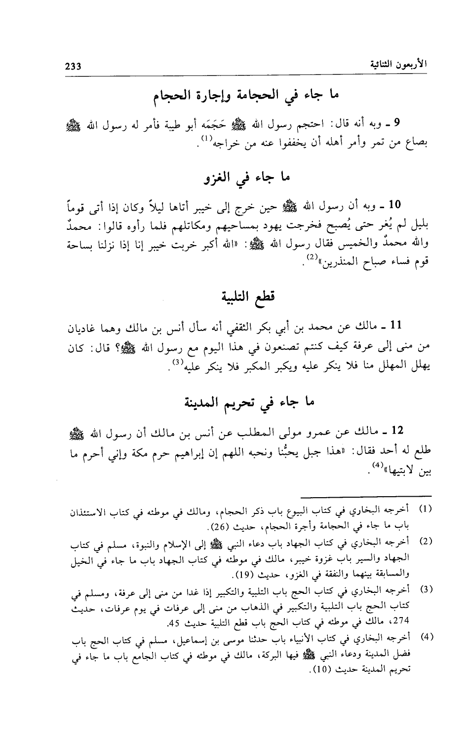 12 - مالك عن عمرو مولى المطلب عن أنس بن مالك أن رسول الله صلى الله عليه وسلم طلع له أحد فقال: "هذا جبل يحبُّنا ونحبه اللهم إن إبراهيم حرم مكة وإني أحرم ما بين لابتيها".