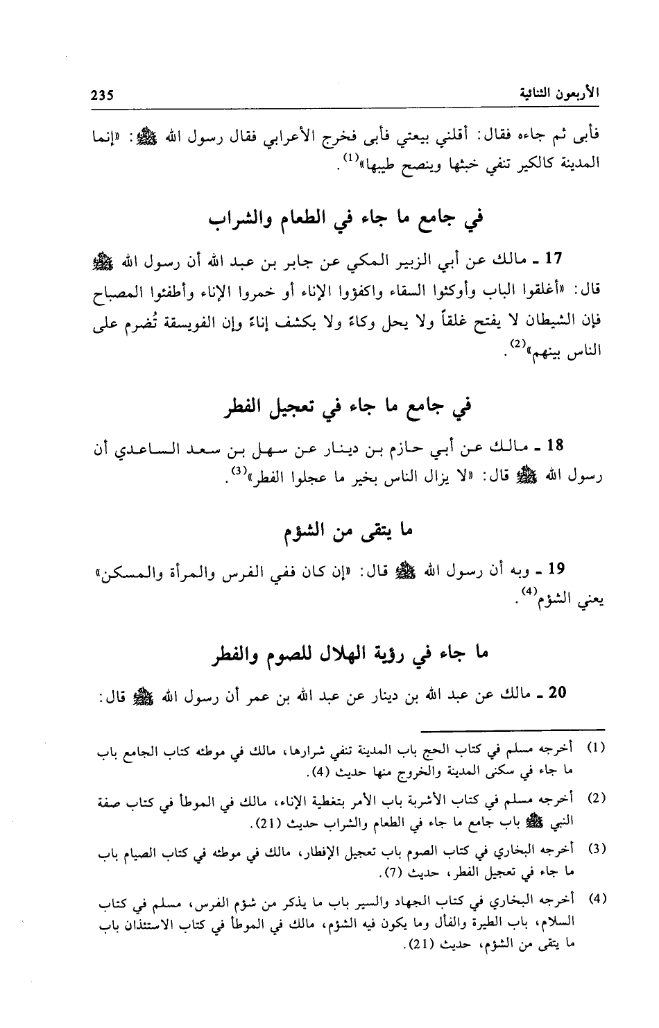 20 - مالك عن عبد الله بن دينار عن عبد الله بن عمر أن رسول الله صلى الله عليه وسلم قال:
