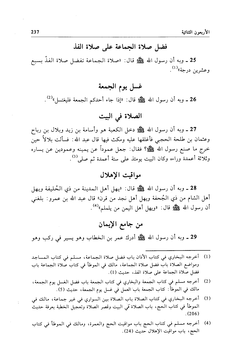25 - وبه أن رسول الله صلى الله عليه وسلم قال: "صلاة الجماعة تفضل صلاة الفذّ بسبع وعشرين درجة".