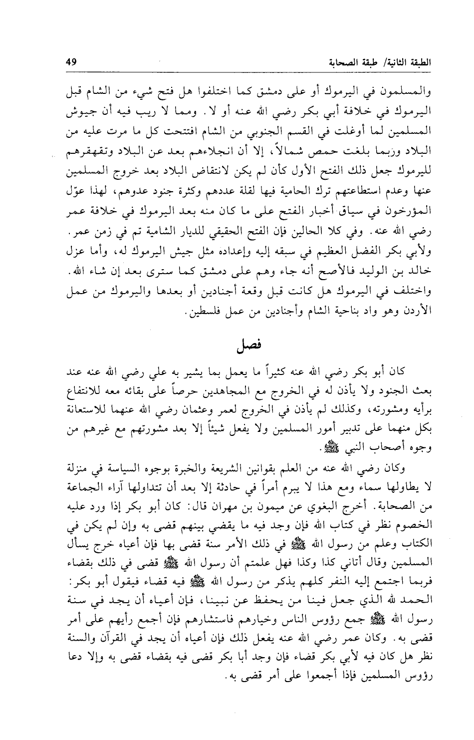 والمسلمون في اليرموك أو على دمشق كما اختلفوا هل فتح شيء من الشام قبل اليرموك في خلافة أبي بكر رضي الله عنه أو لا. ومما لا ريب فيه أن جيوش المسلمين لما أوغلت في القسم الجنوبي من الشام افتتحت كل ما مرت عليه من البلاد وربما بلغت حمص شمالاً، إلا أن انجلاءهم بعد عن البلاد وتقهقرهم لليرموك جعل ذلك الفتح الأول كأن لم يكن لانتقاض البلاد بعد خروج المسلمين عنها وعدم استطاعتهم ترك الحامية فيها لقلة عددهم وكثرة جنود عدوهم، لهذا عوّل المؤرخون في سياق أخبار الفتح على ما كان منه بعد اليرموك في خلافة عمر رضي الله عنه. وفي كلا الحالين فإن الفتح الحقيقي للديار الشامية تم في زمن عمر. ولأبي بكر الفضل العظيم في سبقه إليه وإعداده مثل جيش اليرموك له، وأما عزل خالد بن الوليد فالأصح أنه جاء وهم على دمشق كما سترى بعد إن شاء الله. واختلف في اليرموك هل كانت قبل وقعة أجنادين أو بعدها واليرموك من عمل الأردن وهو واد بناحية الشام وأجنادين من عمل فلسطين.