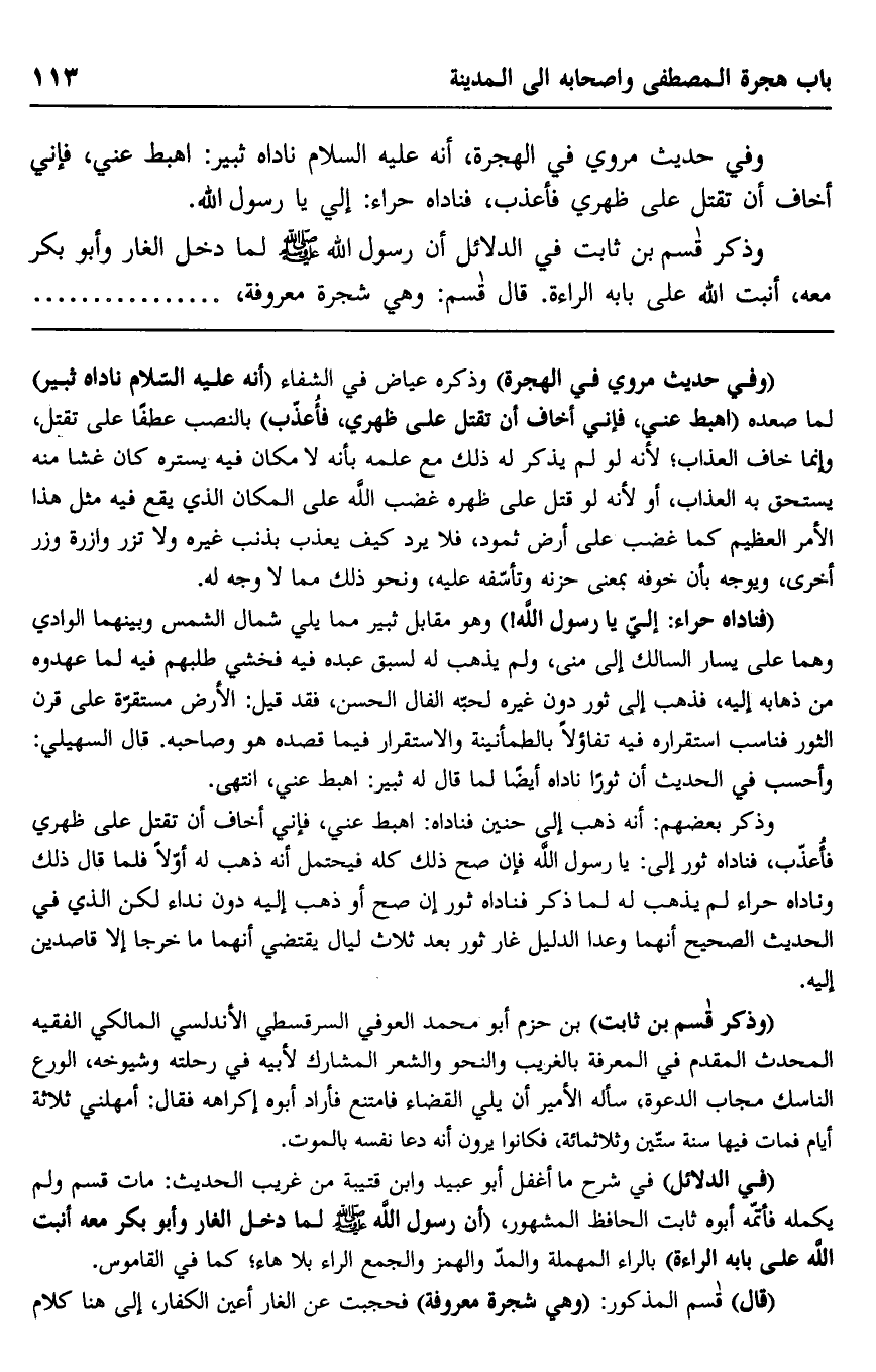 "قال" قاسم المذكور: "وهي شجرة معروفة" فحجبت عن الغار أعين الكفار، إلى هنا كلام