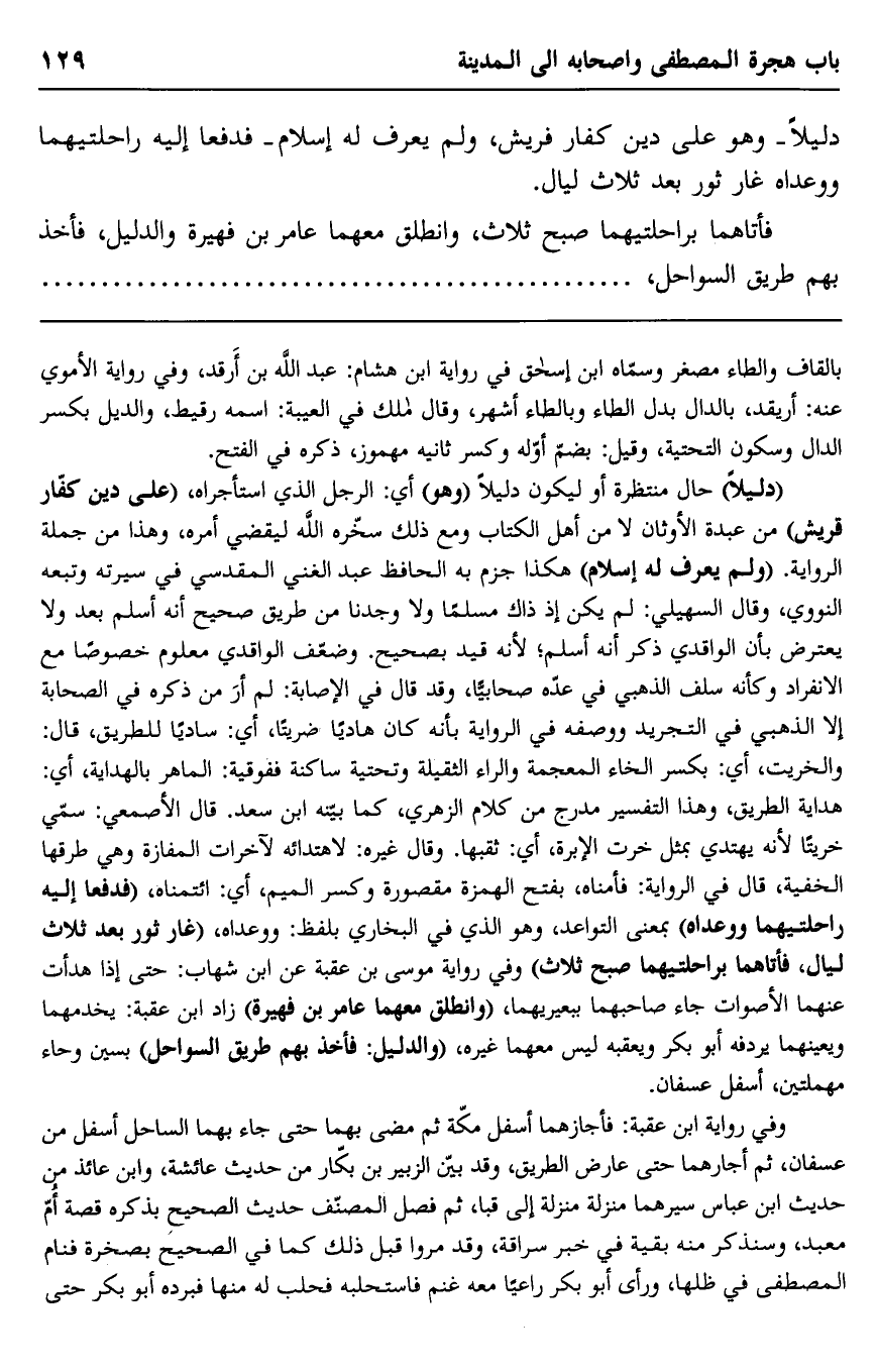 فأتاهما براحلتيهما صبح ثلاث، وانطلق معهما عامر بن فهيرة والدليل، فأخذ بهم طريق السواحل،...........