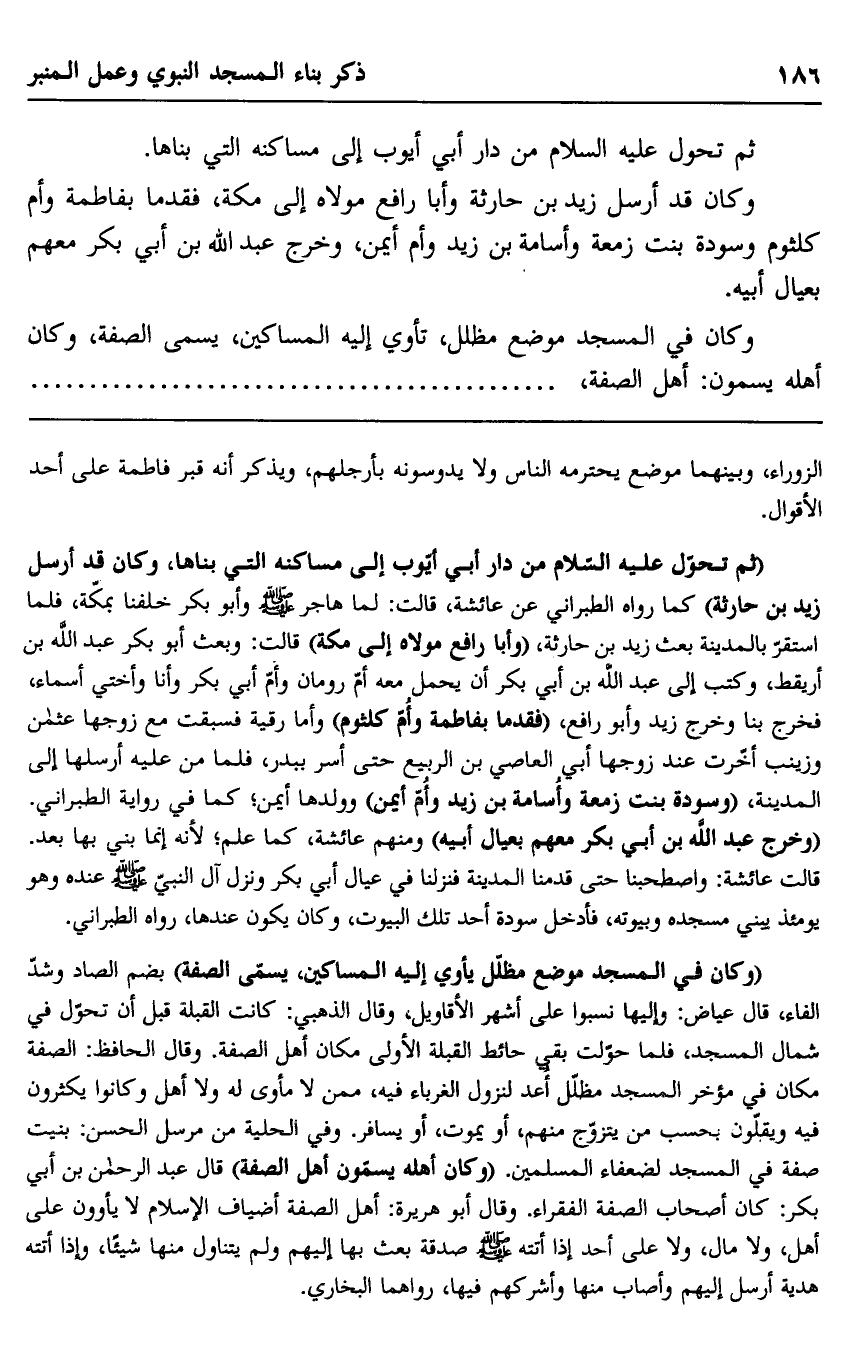 وكان في المسجد موضع مظلل، تأوي إليه المساكين، يسمى الصفة، وكان أهله يسمون: أهل الصفة،.......................