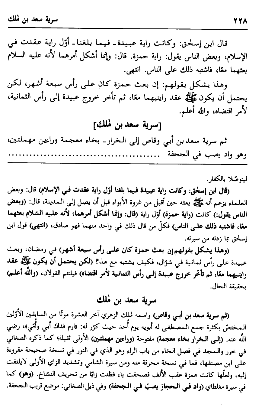ثم سرية سعد بن أبي وقاص إلى الخرار -بخاء معجمة وراءين مهملتين، وهو واد يصب في الجحفة...................................