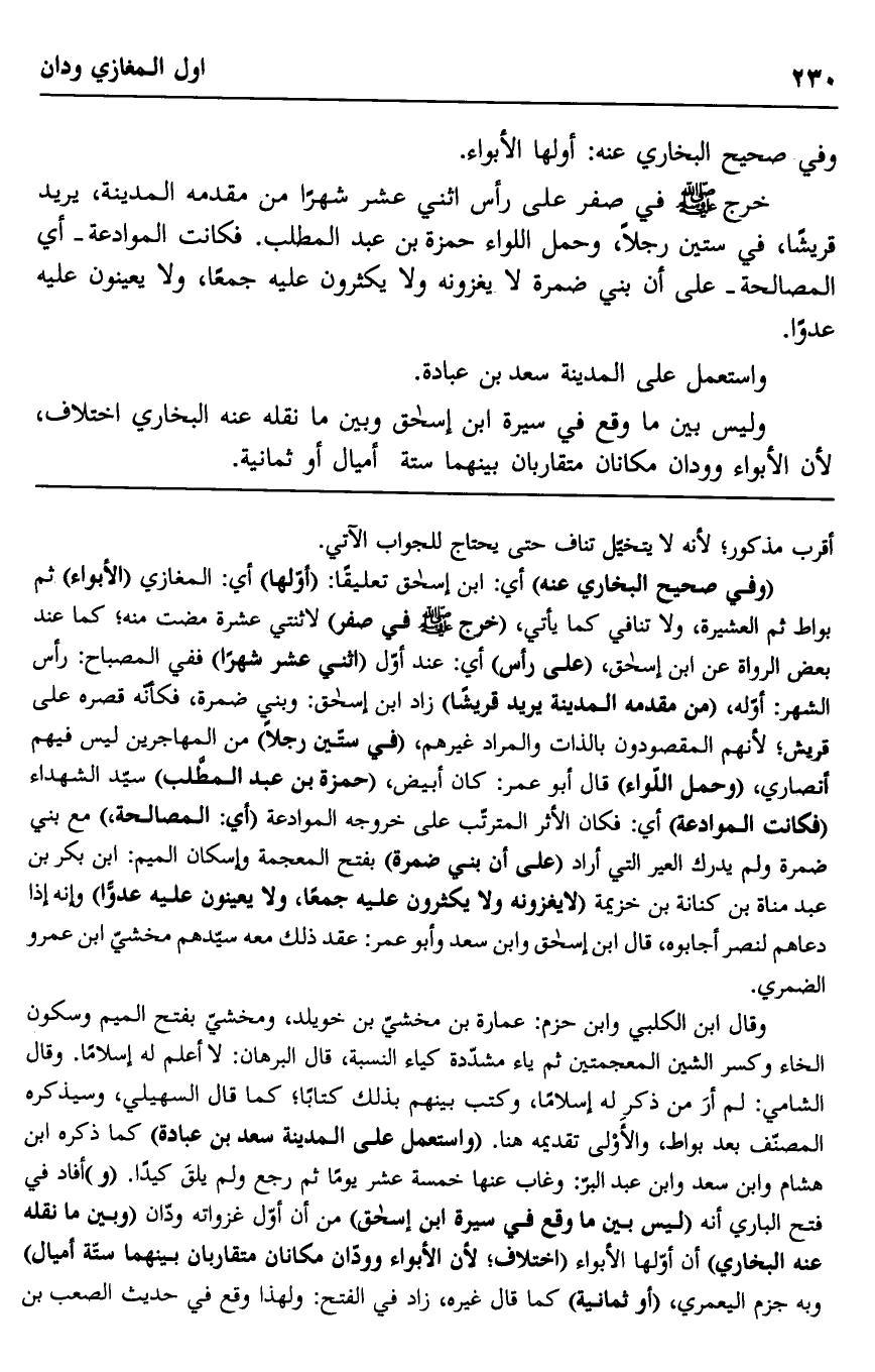 وليس بين ما وقع في سيرة ابن إسحاق وبين ما نقله عنه البخاري اختلاف، لأن الأبواء وودان مكانان متقاربان بينهما ستة أميال أو ثمانية.