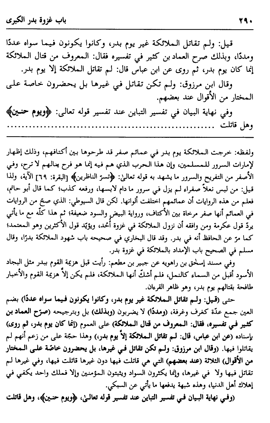 وفي نهاية البيان في تفسير التباين عند تفسير قوله تعالى: {وَيَوْمَ حُنَيْن} وهل قاتلت............................................................................................