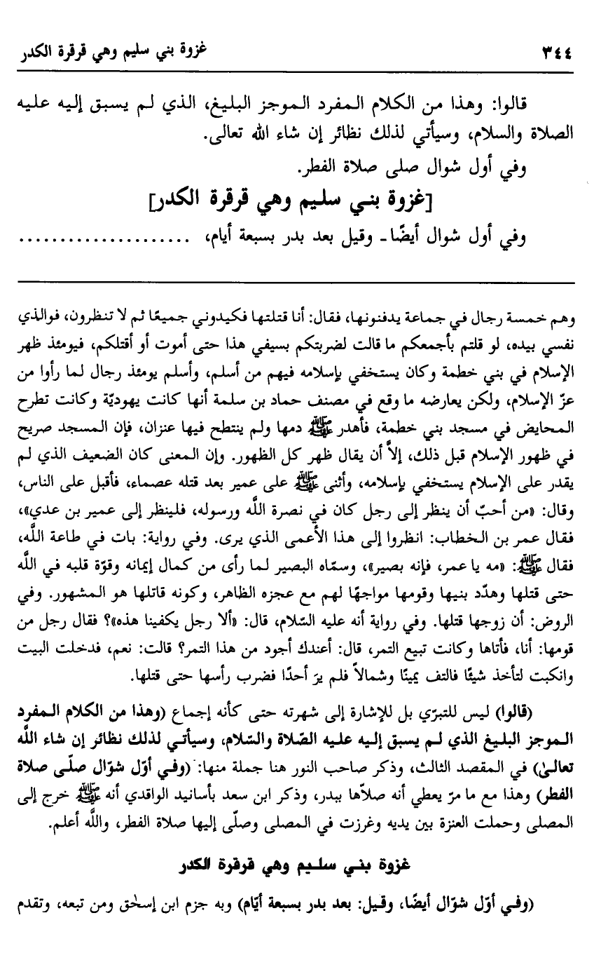 "وفي أول شوال أيضا، وقيل: بعد بدر بسبعة أيام" وبه جزم ابن إسحاق ومن تبعه، وتقدم