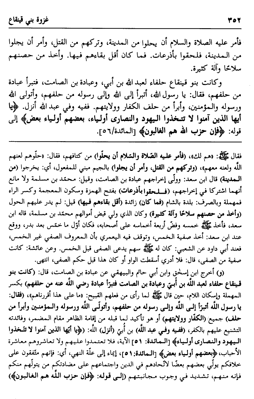 وكانت بنو قينقاع حلفاء لعبد الله بن أبي، وعبادة بن الصامت، فتبرأ عبادة من حلفهم، فقال: يا رسول الله، أتبرأ إلى الله وإلى رسوله من حلفهم، وأتولى الله ورسوله والمؤمنين، وأبرأ من حلف الكفار وولايتهم. ففيه وفي عبد الله أنزل. {يَا أَيُّهَا الَّذِينَ آمَنُوا لَا تَتَّخِذُوا الْيَهُودَ وَالنَّصَارَى أَوْلِيَاءَ بَعْضُهُمْ أَوْلِيَاءُ بَعْضٍ} إلى قوله: {فَإِنَّ حِزْبَ اللَّهِ هُمُ الَْالِبُون} [المائدة: 56] .