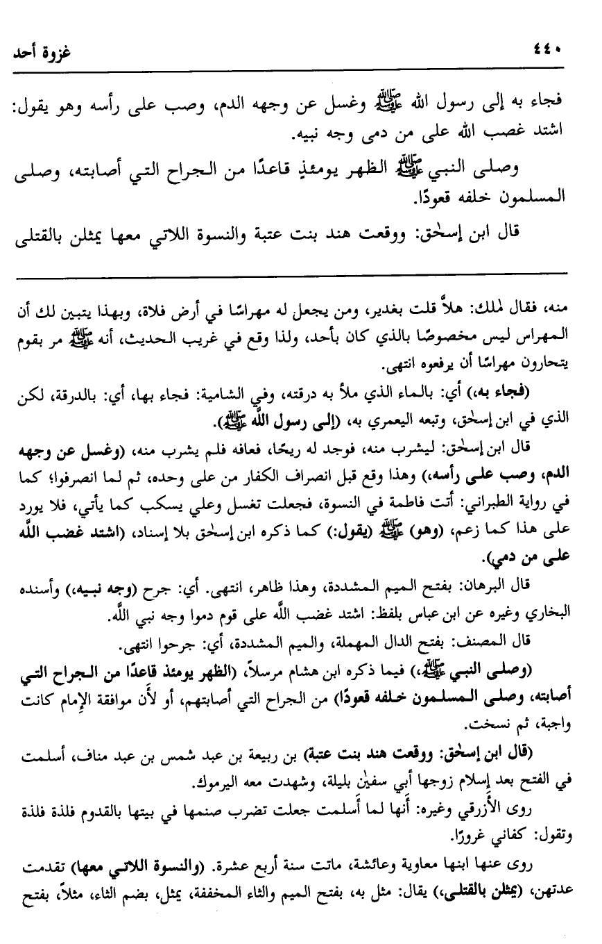 قال ابن إسحاق: ووقعت هند بنت عتبة والنسوة اللاتي معها يمثِّلن بالقتلى